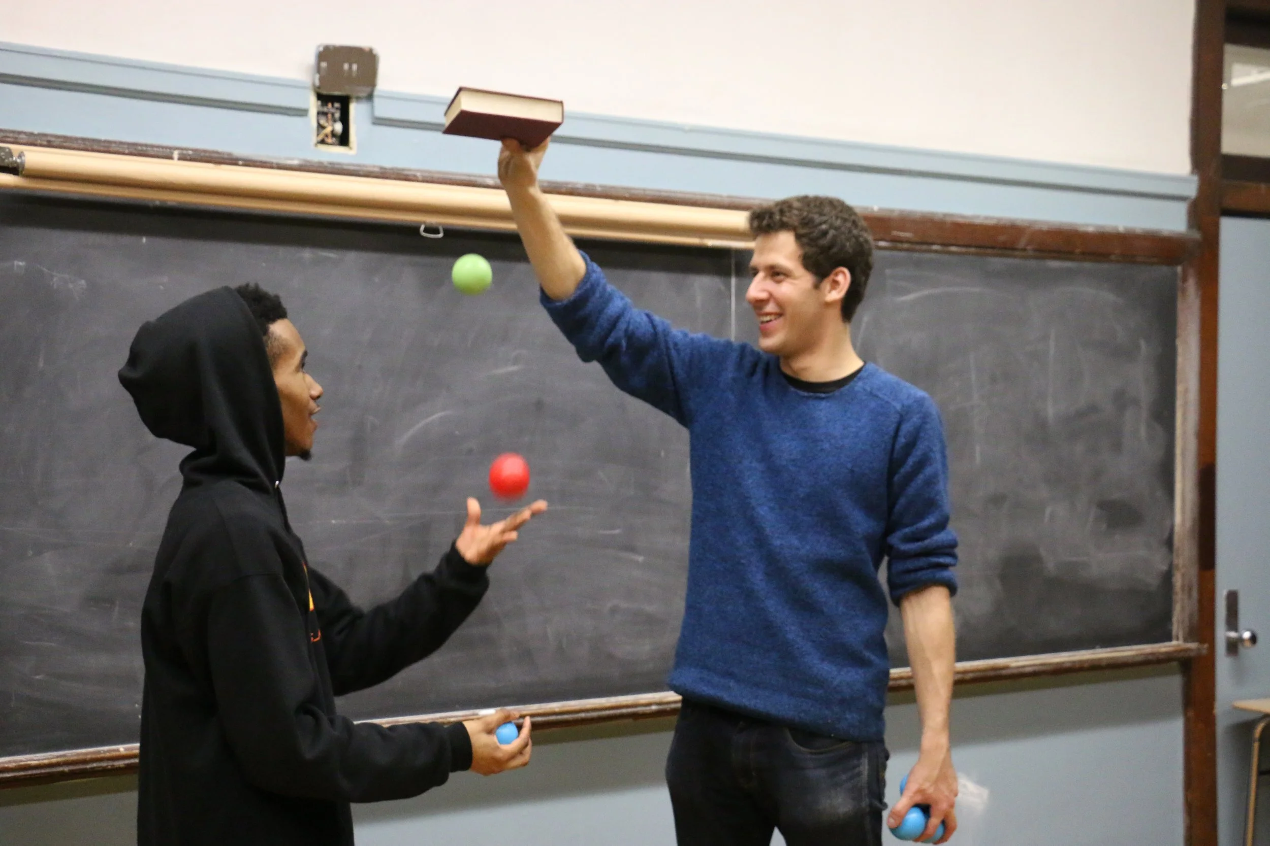 How do you even begin creating your own juggling style? I’d love to help you along this path. Let’s discover different ways of creating new juggling tricks, both solo and for groups. To do this, we will use both physical starting points (our bodies, and the space around us) and mental starting points (our daily routines, stories we’re interested in telling through juggling, different emotions, and musical rhythms). As we grow more comfortable creating tricks, we’ll begin exploring how to sequence both new and old tricks and the process for putting together a successful juggling act.