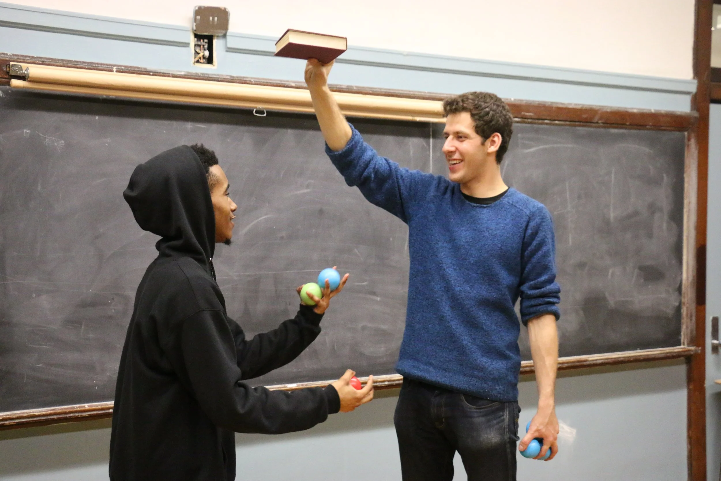 “Jacob isn't just an awesome juggler but he is a master teacher. He was smiling and enthusiastic from the start and his energy level was contagious throughout the workshop…I would recommend Jacob to anyone regardless if they are challenged like me with three balls or are already juggling six and are looking to create a new show like one or two the others in my same group."